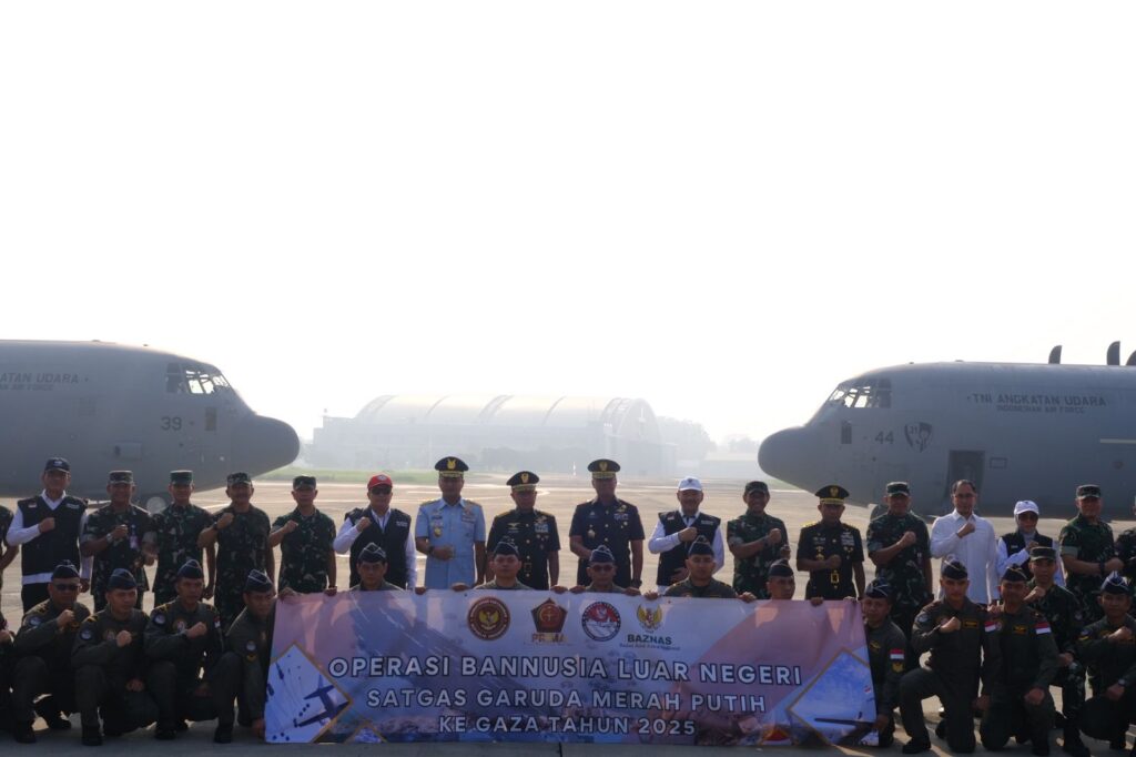 “Mereka akan mendistribusikan total 800 ton bantuan Kemanusiaan dari Baznas dan dukungan bahan makanan dari Kemhan Republik Indonesia.”